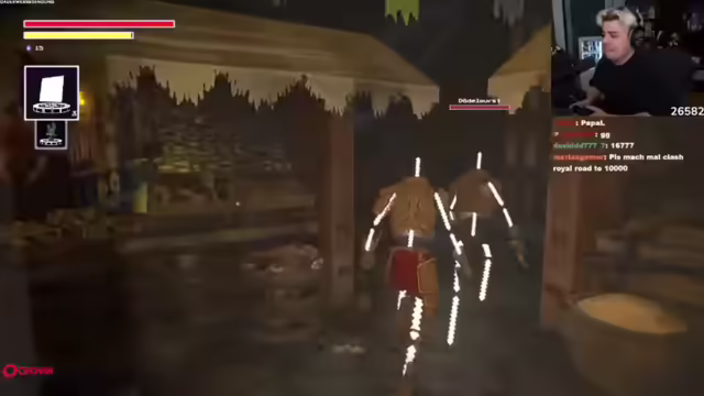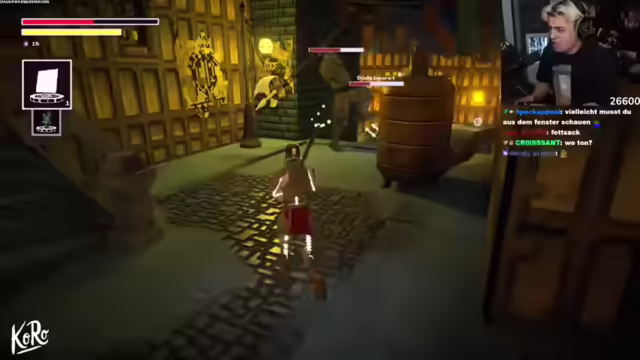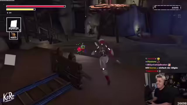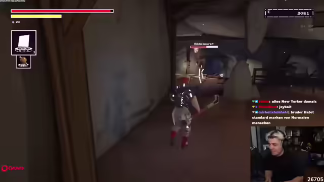 02:51:57Die Streamer finden ein Leuchtfeuer und aktivieren es. Sie stoßen auf einen Kralbecher mit Runen, der Stabilität erfordert, um eine Tür zu öffnen. Außerdem finden sie Items in Kisten, darunter einen Herzstein, der als Teleport zum letzten Lagerfeuer dient. Einer der Streamer probiert aus, zwei Schwerter gleichzeitig zu benutzen. Sie betreten einen neuen Bereich und werden von den 'Bordellbeschützern' angegriffen, die sich als sehr gefährlich erweisen. Einer der Streamer stirbt, aber da sich das Leuchtfeuer in der Nähe befindet, können sie den Bereich schnell wieder betreten. Sie planen, die Gegner mit einem Wirbelwindangriff zu überraschen. Die Streamer versuchen, ein Pascha in Köln zu betreten, was jedoch nicht möglich ist. Sie erkunden die Umgebung weiter und finden heraus, wie man sprintet. Schließlich stoßen sie auf ein Item mit der Bezeichnung 'schlechtes Spieldesign'. Außerdem entdecken sie eine Brauerei und Banditen.