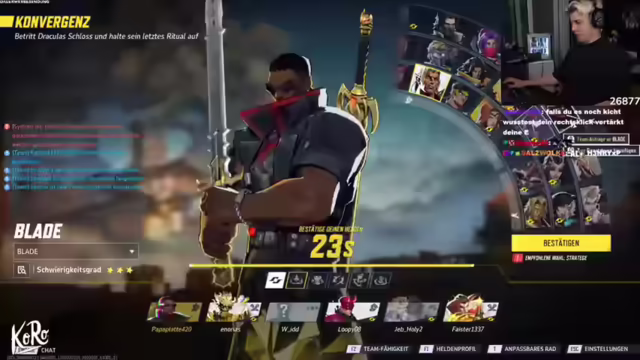 06:42:33Der Streamer betont die Bedeutung von Siegen gegenüber Schaden und Kills. Er beantwortet WhatsApp-Nachrichten und plant, bis zwei Uhr zu spielen, während er auf Koro wartet. Es wird über die Spielstrategie diskutiert, insbesondere das Einholen von Zielen und das Fahren zu bestimmten Punkten auf der Karte. Der Streamer erlebt unerwartete Situationen im Spiel, wie z.B. von Scarlet Witch überrascht zu werden. Es wird überlegt, Koko, der auf dem Steam Deck spielt, zum Team hinzuzufügen. Der Streamer äußert sich überrascht über seinen eigenen Rang und fragt sich, wie schlecht die anderen Spieler sein müssen. Koko tritt dem Spiel mit einem Mobile-Setup bei, was für Erheiterung sorgt. Es wird über die Möglichkeit diskutiert, ein besseres Mikrofon von Niek zu holen, der seinen Stream beendet hat. Der Streamer wechselt auf Psylocke und fragt den Chat nach Meinungen zu Blade als Nahkämpfer.