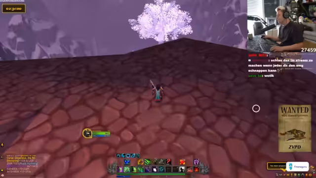 03:23:44Während der Jagd stellt der Streamer fest, dass Basti Fehler bei der Jagdtaktik gemacht hat. Er erklärt, dass Basti am Standort hätte stehen bleiben und Schaden nehmen müssen, damit der Streamer helfen konnte. Stattdessen hat Basti den Mob getötet. Der Streamer diskutiert über die Layer-Systeme in World of Warcraft und wie man effizient zwischen verschiedenen Welten wechseln kann, um die Chance zu erhöhen, den ZVPD zu finden.