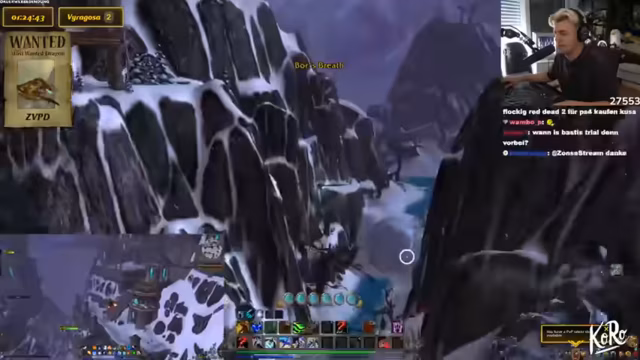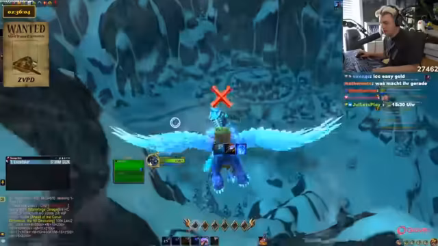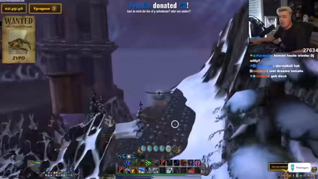 02:44:50Basti erreicht Level 35, was das schnellere Fliegen ermöglicht. Ein Charakterboost wird aufgrund von Bastis Accountstatus nicht in Betracht gezogen. Die Vorbereitungen für die ZVPD-Jagd beginnen, inklusive der Erklärung der Flugrouten in den Sturmgipfeln und der Spawnpoints des Drachen. Die Problematik des geteilten Spawns mit Viragosa wird angesprochen, was die Suche erheblich erschweren könnte. Ein Makro zum Anvisieren des Drachen wird erstellt und dessen Nutzung erklärt. Es wird festgelegt, dass Zuschauer helfen dürfen, indem sie den Streamer auf ihren Server einladen, um Server zu wechseln und die Suche zu beschleunigen. Das Töten des ZVPD durch Zuschauer wird ausgeschlossen, stattdessen sollen sie für das Finden und Töten des Drachen belohnt werden.