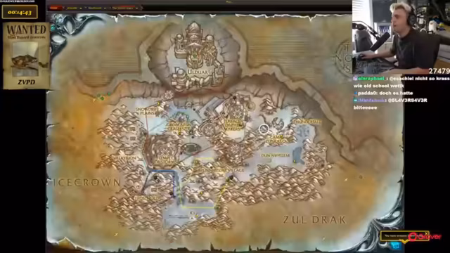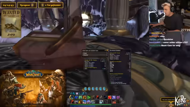 04:58:39Es wird überlegt, ob Basti sich von jemandem einladen lassen und den Server wechseln soll. Dafür müsste er jemanden bei Battlenet adden, der einen Account Level 60 oder drunter hat. Die Person muss sich dann einladen und den Server wechseln. Es wird als todkompliziert und als halbe Facharbeit bezeichnet. Es wird überlegt, ob man Chromie verlassen und sich von Leuten auf normalen Servern einladen lassen soll, was aber riskanter wäre, da dort mehr Leute unterwegs sind. Es wird überlegt, ob man die beiden Spieler, die gerade mitfliegen, einladen soll, damit sie mithelfen. Es wird eine Erklärung für die Zuschauer gegeben, die nicht verstehen, was gesucht wird: Der zeitverlorene Proto-Drache (ZVPD), der alle vier bis zehn Stunden spawnt, entweder er oder Viragosa. Es gibt mehrere Server, die abgesucht werden können. Die Flugrouten sind markiert und werden abgeflogen. Es wird überlegt, ob man den beiden Spielern, die mitfliegen, vertrauen kann. Einer der beiden bietet an, einzuladen. Es wird beschlossen, den Server erneut zu wechseln. Es wird gehofft, dass die WoW-Community ehrenvoll ist und nicht trollt.