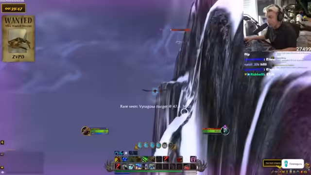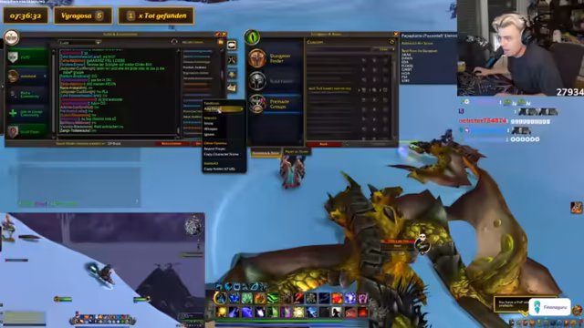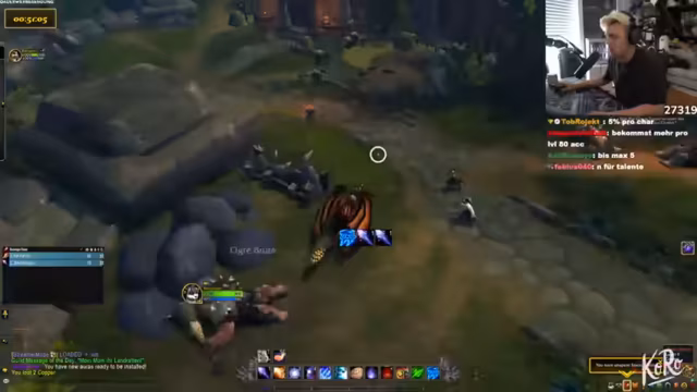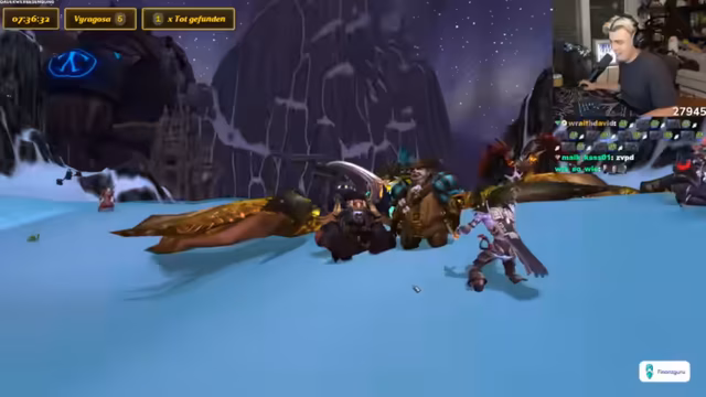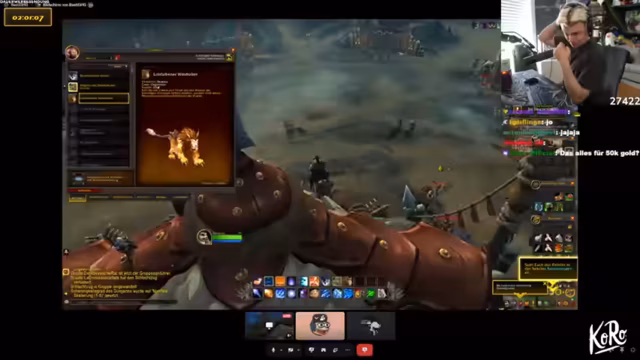 07:23:29Der Streamer erklärt, dass die aktuelle Aktivität im Spiel, das Suchen nach einem seltenen Reittier auf verschiedenen Servern, nicht den typischen WoW-Alltag widerspiegelt. Der Streamer findet den Drachen, aber ein anderes Gildenmitglied tötet ihn, was zu Frustration führt. Der Streamer wechselt den Server und erreicht Level 44. Der Streamer erklärt, dass das Töten des Drachen durch ein anderes Gildenmitglied zu spät erfolgte, da er gerade erst in die Gilde eingeladen wurde. Der Streamer tröstet Kevin und wechselt den Server, nachdem er einen epischen Prismalisten-Anhänger erhalten hat. Der Streamer wechselt den Server, nachdem er einen epischen Prismalisten-Anhänger erhalten hat. Der Streamer lobt Kevin und erreicht Level 44.