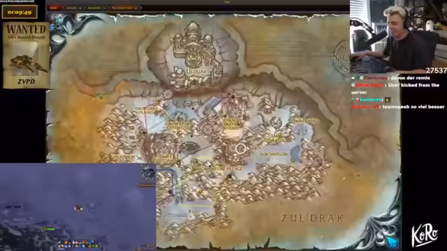 04:30:55Es wird erklärt, dass die Suche nach dem Zeitverlorenen Protodrachen (ZVPD) und Viragosa fortgesetzt wird, selbst wenn der ZVPD vor ihren Augen getötet wird. Die Strategie beinhaltet das Wechseln von Servern, da sich ZVPD und Viragosa einen Timer teilen. Viragosa wurde bereits zweimal gesichtet, was die Chancen erhöht. Es wird überlegt, ob ein Level 10 Oger, der nach dem Drachen sucht, eine Bedrohung darstellt. Die Idee, einen zweiten WoW-Account zu erstellen, um die Suche zu unterstützen, wird diskutiert, aber als zu aufwendig verworfen. Es wird überlegt, auf welchen Server gewechselt werden soll, wobei berücksichtigt wird, dass Viragosa auf einem der verfügbaren Server bereits getötet wurde. Die Frage nach dem War Mode wird aufgeworfen und wie er aktiviert werden kann. Ein Zuschauer schlägt vor, Test-Chars auf Low-Popular- oder RP-Servern zu erstellen und dann auf diese zu wechseln, was aber als zu kompliziert angesehen wird.