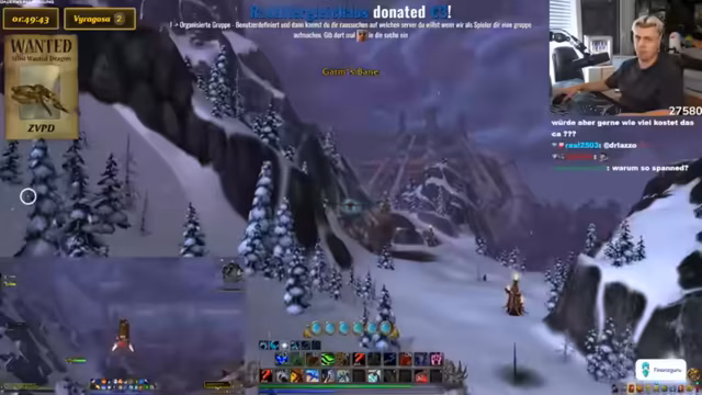 00:08:24Es wird ein detaillierterer Einblick in das Ziel des Streams gegeben: die Suche nach dem ZVPD in Nordend. Der Streamer erklärt, dass der Drache eine 100-prozentige Dropchance hat, sobald er gefunden und getötet wird. Das Problem besteht darin, dass der Drache nur alle vier bis zehn Stunden respawnt, was die Suche erschwert. Der Streamer teilt seine Erfahrungen aus der Vergangenheit, in denen er vergeblich nach dem Drachen gesucht hat, und äußert die Hoffnung, dass sich dies heute ändern wird. Basti zeigt ein TikTok von Durotar, was die Vorfreude auf den gemeinsamen Stream steigert. Es wird klargestellt, dass es sich um einen seltenen Drachen handelt, der im alten WoW zu finden war und das Ziel ist, ihn zu töten.