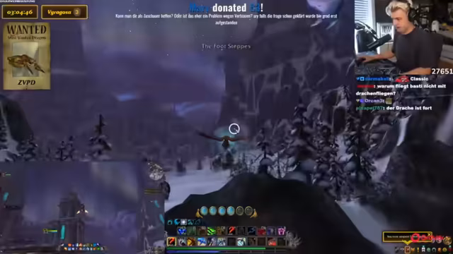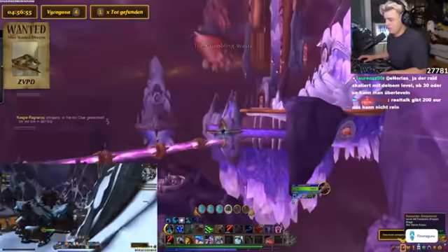 03:55:50Es gibt Schwierigkeiten beim Landen und Kämpfen gegen einen Rare Mob, was zu Frustration führt. Der Streamer befürchtet, dass ein anderer Spieler den Drachen stehlen könnte, falls er gefunden wird. Es wird überlegt, den Flugmodus zu wechseln, um die Steuerung zu vereinfachen. Nach dem Besiegen des Mobs wird diskutiert, ob der Server gewechselt werden soll. Es wird erklärt, dass der ZVPD mit einer Wahrscheinlichkeit von 10% spawnt, während Viragosa in 9 von 10 Fällen erscheint. Der Streamer stirbt und respawnt, um die Suche fortzusetzen. Es wird überlegt, ob die Spawns gezielt abgeflogen werden sollen. Es wird überlegt, was ein Paladin ist und es wird über den World of Warcraft-Film gesprochen. Es wird festgestellt, dass Viragosa erneut tot ist, was zu Verwirrung führt, ob der Serverwechsel erfolgreich war. Es wird beschlossen, sicherheitshalber den Account komplett zu wechseln. Es wird die Frage aufgeworfen, ob Chromie Layer-Switches durchführt. Der Streamer erinnert sich an eine Mr. T WoW-Werbung und die damit verbundenen negativen Erfahrungen in der Schule. Es wird von einem gehackten Yuppie-Profil berichtet, für das der Streamer verantwortlich gemacht wurde, weil er WoW spielte.