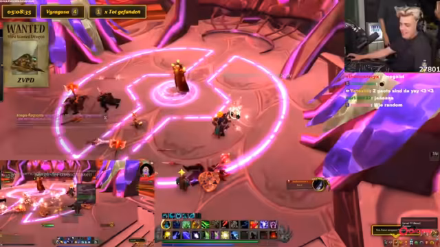 08:35:10Die Streamer sind auf der Suche nach einem seltenen Drachen namens ZVPD in World of Warcraft. Sie haben einAddon, das die verschiedenen Routen und Spawnpunkte zeigt. Der Drache teilt sich den Spawn-Timer mit einem anderen Mob namens Viagrosa. Die Streamer haben eine Gilde gebildet und suchen auf mehreren Servern gleichzeitig. Sie haben bereits mehrere Rares gefunden und getötet, darunter zweimal jeden Streamer. Die Suche erfordert Koordination und schnelles Serverwechseln.