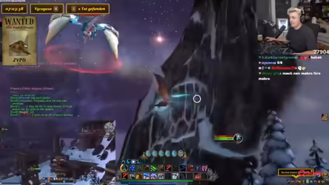 07:30:27Der Streamer verspricht einen Finderlohn von 25.000 Euro und 200.000 Gold für das Finden des Drachen in der Gilde. Der Streamer erhält ein Drachenei und scheint kurz davor zu sein, einen Drachen zu bekommen. Der Streamer bietet eine Million Gold für den Finder des Drachen. Der Streamer schaltet das Drachenreiten frei und ist gespannt darauf, wie es sich anfühlt. Der Streamer wechselt den Server und benötigt einen neuen Invite. Der Streamer legt ein Makro fest und lernt, mit den Punkten zu wirtschaften. Der Streamer wechselt den Server und benötigt einen neuen Invite. Der Streamer findet das Fliegen mit dem Drachen cool und macht es viel mehr Spaß.