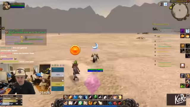 01:00:29Die Gruppe optimiert ihre Ausrüstung und Fähigkeiten für den bevorstehenden Dungeon. Der Streamer überlegt, ob ein neuer Offhand-Gegenstand mit 24 Heilzaubererhöhungen besser ist als sein aktueller Stab, entscheidet sich aber vorerst dagegen. Diskussionen über Weak Auras für Warrior-Mechaniken wie Overpower und Rache werden geführt, um die Spieloberfläche zu verbessern: 'Wenn die Bedingung erfüllt ist, bekommst du ein kleines Fenster, wo es steht, überwältigen.' Die Gruppe koordiniert das Erreichen von Level 40 für Reittiere, wobei Goldmangel als Problem genannt wird (Lehrer kosten viel Geld). Logistisch wird besprochen, nach dem Dungeon den Flugpunkt in Theramore zu aktivieren, um schneller nach Tanaris zu reisen. Der Streamer motiviert: 'Wir hitten heute, wenn alles klappt, Level 35 mindestens.'
