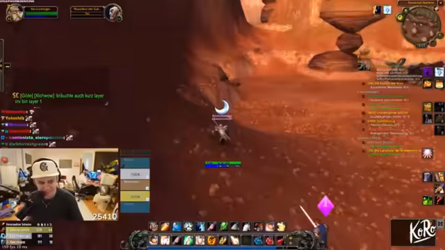 01:13:52Die Gruppe plant den Tagesablauf: Zuerst wird ein Flugpunkt geholt, um Wege zu kürzen und spätere Lauferei zu vermeiden. Anschließend soll Wilbo eine Quest abholen. Der Kernplan ist ein Dungeon-Run zu fünft mit Kerak und Wilbo. Nach diesem Treffen trennen sich die Wege für das Leveln auf der schimmernden Ebene. Das oberste Ziel bleibt unverändert: Keine Todesfälle riskieren. (Zeitstempel 4432-4460)