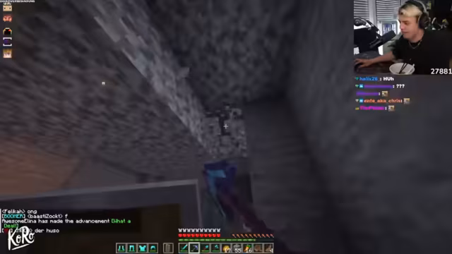 03:34:04Während die ersten Bauten beginnen, stoßen die Streamer auf technische Schwierigkeiten wie einen Ausfall des Chats und dunkle Höhlen, die Beleuchtung erfordern. Um die Mine besser zu erschließen und die Bewegung zu erleichtern, wird der Bau von Treppen diskutiert. Neben dem Bau der Mine bereitet sich der Streamer auch darauf vor, Tridents zu verzaubern und benötigt dafür die XP der anderen Gruppenmitglieder.