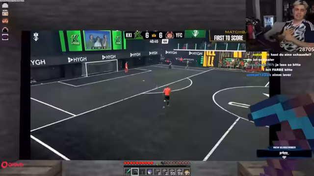 03:56:40Der Streamer unterbricht das Minecraft-Spiel für einen Exkurs in die reale Welt. Er spricht über seine Teilnahme an der Kings League, einem Amateur-Fußballwettbewerb, und informiert das Publikum über anstehende Spiele. Gleichzeitig stellt er persönliche Pläne vor, wie zum Beispiel das gemeinsame Anschauen eines Fußballspiels in Minecraft mit Basti, der dafür eine virtuelle Kino-Umgebung baut. Dies zeigt die Verzahnung des Gaming-Streams mit anderen persönlichen Hobbys und Events.