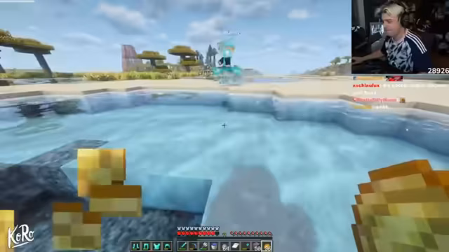 06:37:20Eine weitere, eher komisch anzusehene Interaktion findet mit dem Spieler Rose statt. Streamer stellt sie zur Rede, da sie in seinem Territorium Schutzgeld einfordert. Nach anfänglicher Abwehr und einem Todesfall während der Geldbeschaffung, versucht Streamer, Rose zu einem Deal zu bewegen. Im Zuge einer verbalen Auseinandersetzung, die in Spiel und Chat überschwappt, werden die Todesarten thematisiert und schließlich ein Abstrich ausgehandelt, bei dem Rose einen Diamanten zahlt und Streamer das Bauen an ihrer Stelle erlaubt.