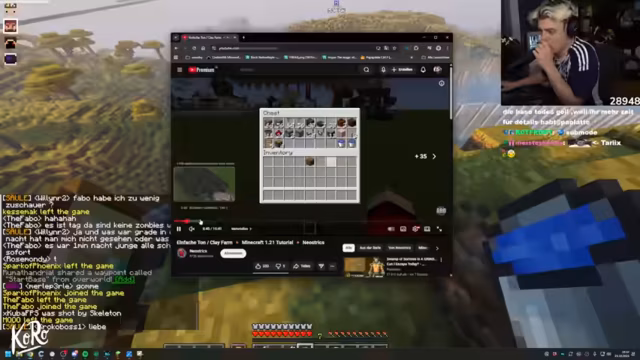 04:13:01Die anhaltende intensive Arbeit wird durch alltägliche Ablenkungen unterbrochen. Der Streamer verlässt das Spiel kurz, um sein Mittagessen, Ramen, zuzubereiten. Parallel dazu tauchen persönliche Anekdoten und Nostalgien auf, wie die Erinnerung an seine Mutter, die seinen Adventskalender als Kind ausraubte. Diese humorvollen und alltäglichen Momente dienen als lockere Pausen und humanisieren den Streamer, der sonst tief in die komplexen Bauprojekte involviert ist.