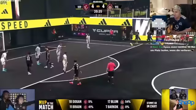 03:35:10Der Streamer nutzt verschiedene technische Lösungen wie OBS und spezielle Plugins wie Volume Master für Chrome, um die Audioqualität zu optimieren. Es kommt zu technischen Herausforderungen, wie der Notwendigkeit, die Kameraberechtigungen anzupassen. Trotz dieser Herausforderungen gelingt es dem Streamer, das Spiel zu übertragen und den Zuschauern ein authentisches Stadionerlebnis mit various Kameraperspektiven zu bieten.
