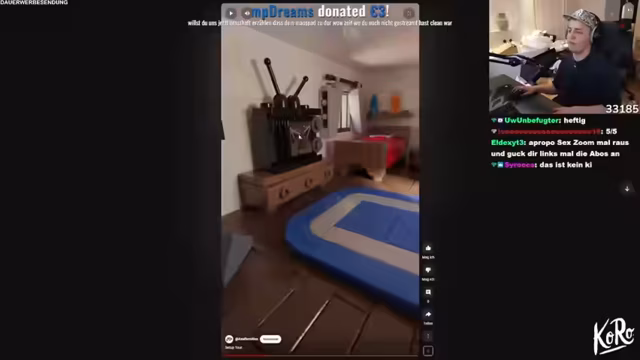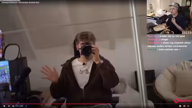 02:06:29Der Streamer beginnt mit der Beschreibung seines Computer-Setups, das mit einem E-Foll und einer Kette aufgewertet wurde. Er erwähnt ein Problem mit den GBL-Kopfhörern, das bei Nichtgebrauch auftritt. Er zeigt auch sein Bücherregal für den 'gebildeten Boss' und beschreibt seinen Fernseher, auf dem Blockbuster-Filme angeschaut werden. Besonders hervorgehoben wird ein Herman Miller-Stuhl, der wie ein 'Fetisch-Frauenarztstuhl' aussieht.