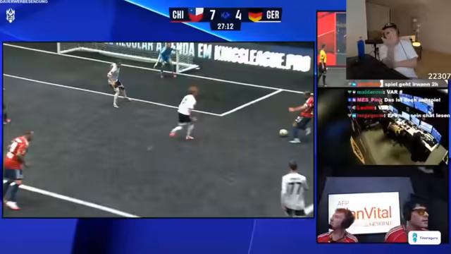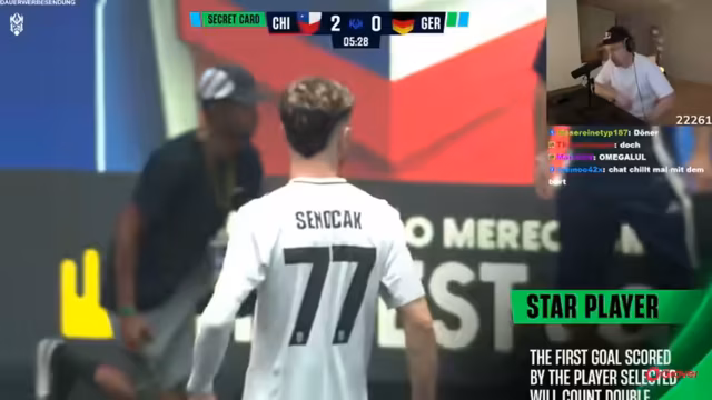 Bei einem Spiel zwischen Deutschland und Chile werden die Begegnungen durch Sauercrowd-Reaktionen und TikToks begleitet. Ein Stromausfall sorgt für eine unerwartete Unterbrechung, in der der Einsatz eines Laptops relevant wird. Die Veranstaltung kombiniert live Sport mit kreierten Inhalten aus der Online-Community und zeigt, wie externe Ereignisse den Ablauf beeinflussen können.