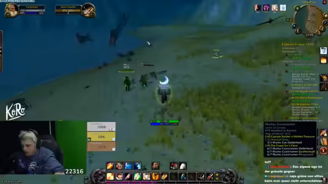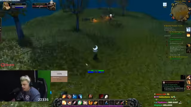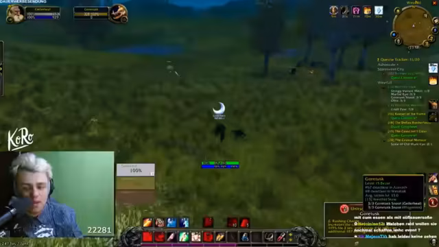 05:57:22Der Streamer teilt persönliche Anekdoten von der Edel-Tour, besonders positive Erlebnisse in Dublin und vorsichtige Erfahrungen in Großbritannien. Nach einem kurzen Exkurs über riskantes Verhalten bei Partys (Boxautomaten-Vorfall) konzentriert sich das Team wieder auf Quest-Ziele: Gnolle und Murlocs bekämpfen sowie seltene Quest-Items sammeln, wobei sie potenzielle Risiken bei schwereren Gegnern abwägen.