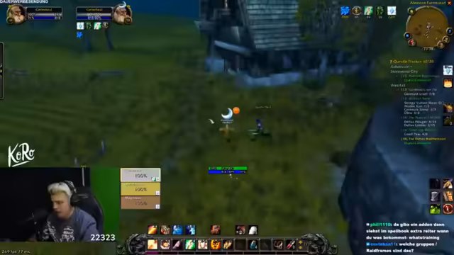 05:10:00Die Gruppe analysiert ihre Leveling-Geschwindigkeit ohne Rested XP und betont den Vorteil des gemeinsamen Levelings gegenüber Solo-Play. Sie planen, die wichtige Eintopf-Quest abzuschließen, während positive Erfahrungen mit der Community geteilt werden: Random-Spieler halfen spontan bei Problemen, was nostalgische 2004-Vibes weckt. Taktische Überlegungen für Kämpfe mit Feuerball-Zauberern werden besprochen.