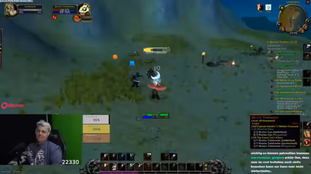 05:31:45Die Gruppe sammelt Quest-Gegenstände (Plünderer, Greifer-Zähne) und bereitet sich auf Dungeon-Runs vor. Sie diskutieren Level-Anforderungen (ca. 20-22) und strategische Herangehensweisen. Für neue Spieler wird ein WoW-Erklärungs-Clip empfohlen, während Koordinationsprobleme mit Layering-Servern gelöst werden, um gemeinsam in der Spielwelt zu bleiben.