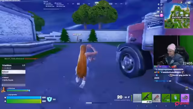 03:02:03Der Streamer diskutiert seine Unzufriedenheit mit dem aktuellen Fortnite-Setup und betont, dass Konsistenz für Shooter wie Fortnite entscheidend ist, da Fortschritt bei Pause schnell verloren geht. Er erwähnt seine Erfahrungen aus den CS:GO-Tagen und stellt fest, dass er nach einer Woche Pause stark abfällt. Während des Spielens gibt es Spannung mit Superscheren-Einsätzen, Jumpy-Strategien und Revive-Mechaniken, wobei er mehrfach unter Druck steht. Ein Höhepunkt ist das Erreichen einer 3-von-3-Runde, was als Erfolg gefeiert wird, auch wenn das Finale wegen technischer Probleme und Fehlern nicht perfekt lief.