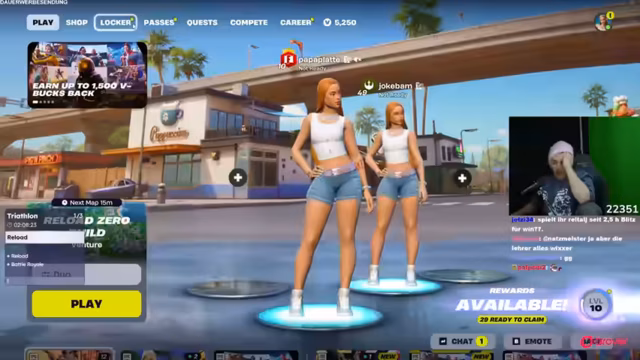 00:06:00Der Stream startet live aus New York City, wo Papaplatte und sein Team den neuen Tag beginnen. Es wird die Blut-Ship-Partnerschaft mit Mr. Fashion (Yoshi X) angekündigt, mit der Aussicht auf gemeinsame Fortnite-Sessions. Ein besonderer Fokus liegt auf der anstehenden Fortnite-Win-Challenge, die als Triathlon konzipiert ist und aus drei aufeinanderfolgenden Spielen in verschiedenen Modi besteht. Parallel dazu gibt es technische Diskussionen über die Kameraqualität und den Fortschritt beim Bauen einer alternativen Unterkunft.