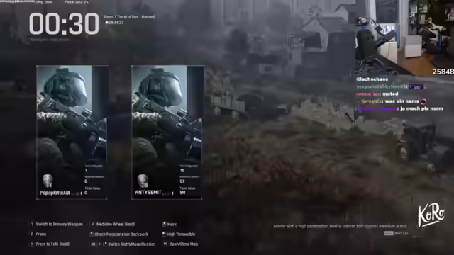 06:36:31Der Streamer wird in einer Solo-Ops-Runde schnell von einem anderen Spieler getötet. Er analysiert die Killcam und stellt fest, dass der Gegner eine sehr gute Waffe hatte. Er vermutet, dass Solo-Ops schwieriger sind und dass er vielleicht erst einmal in das Spiel reinkommen sollte. Er ist frustriert darüber, dass er jetzt wieder fast pleite ist. Er nutzt die Möglichkeit, ein Preset-Gear auszuwählen, um schnell wieder ins Spiel zu kommen. Er überlegt, ob er sich ein sehr teures Gear zusammenstellen soll, entscheidet sich aber dagegen. Er kauft eine AKM und überlegt, ob er eine MDR kaufen soll. Er stellt fest, dass es im Spiel eine offizielle Empfehlung für den Zusammenbau von Waffen gibt, was er sehr nützlich findet. Er stellt fest, dass er mit so viel Gear nicht den normalen Modus spielen kann, da es ein Limit gibt. Er entscheidet sich, in Solo-Ops zu gehen und zahlt dafür extra. Er startet die Runde und wird schnell getötet.