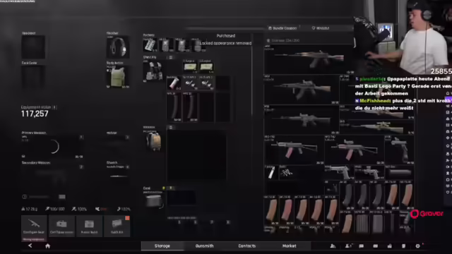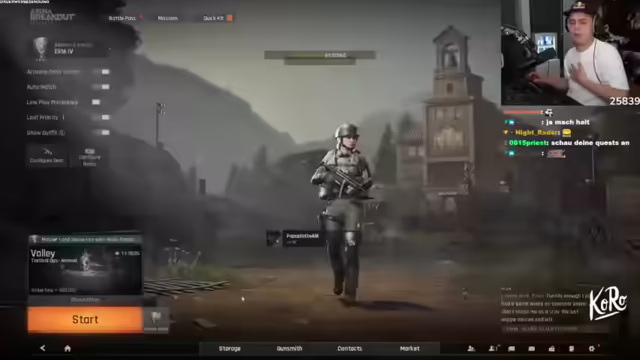 06:48:41Nachdem der Streamer in der vorherigen Runde schnell gestorben ist und die Spielstunden des Gegners analysiert hat, beschließt er, es in Zukunft ruhiger angehen zu lassen. Er vermutet, dass seine Rüstung in den vorherigen Runden wenig gebracht hat, weil die Gegner möglicherweise Munition verwendet haben, die seine Rüstung durchdringen konnte. Er entscheidet sich für eine entspanntere Runde und wählt ein Gear, das etwa 400.000 kostet. Er nimmt ein Preset-Build und stellt fest, dass ihm ein Kopfhörer fehlt. Er startet eine neue Runde und freut sich darüber, wie schnell man in das Spiel reinkommt, im Vergleich zu Tarkov. Er fragt sich, ob der Gegner, der ihn getötet hat, ein anderer war als der, den er zuerst gesehen hat. Er stellt fest, dass er einen Teammate hat, der anscheinend keine Lust hat zu reden.