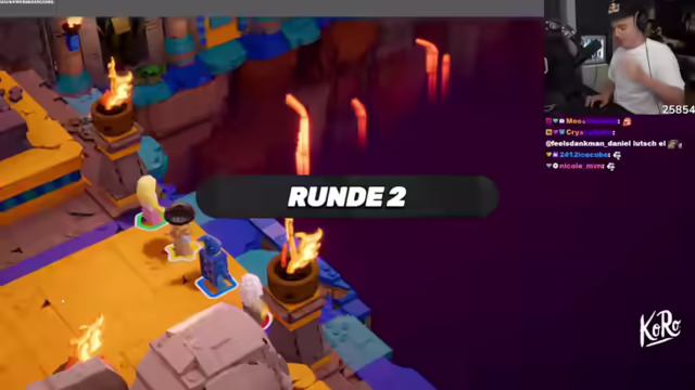 09:20:09Es wird überlegt, mit wem man tauschen soll, um näher an einer Kiste zu sein. Ein Tauschfeld wird ausgelöst, und es wird diskutiert, wen man wählen soll. Es wird festgestellt, dass es Runden gibt, in denen man nur wenige Noppen bekommt. Ein Lanzengefecht wird ausgewählt, aber es wird festgestellt, dass es mit Controller einen unfairen Vorteil gibt. Es wird diskutiert, ob ein Spieler einen übertrieben unfairen Vorteil hat, weil er einen Controller benutzt. Es wird ein Lavakrakel entdeckt, und es liegen viele Steine herum. Es wird überlegt, welchen Pfad man einschlagen soll, um einen goldenen Stein zu bekommen. Es wird festgestellt, dass ein Spieler übertrieben viele Noppen hat, weil er viele Minispiele gewonnen hat.