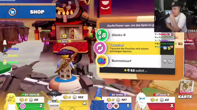 08:39:43Es wird über die Freischaltung von Minifiguren gesprochen und die Spielmechanik im Vergleich zu Mario Party gelobt. Der Kristallkönig wird als Manifestation des Ultrabösen dargestellt. Es wird überlegt, wie man Noppen am besten einsetzt und ob man Steine von anderen Spielern klauen soll. Es wird eine Situation geschildert, in der einem Spieler Noppen weggenommen werden, was zu Unmut führt. Es wird überlegt, ob die Zahlen im Spiel zufällig sind oder ob es einen Algorithmus gibt. Ein Spieler sichert sich den ersten goldenen Stein und es wird überlegt, welches Power-Up man wählen soll. Die Glücksacht wird als vorteilhaft angesehen. Es wird die Frage aufgeworfen, wie man die Karte öffnet und es wird festgestellt, dass man sich in der Nähe eines Steins befindet.