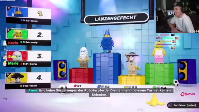 09:39:30Das Lego Party Spiel neigt sich dem Ende zu, wobei diskutiert wird, ob Glück oder Können entscheidend für den Sieg waren. Es wird festgestellt, dass Merle überraschend gewonnen hat, was als seltenes Ereignis angesehen wird. Abschließend bewertet er Lego Party als freundliches Partyspiel mit einer 7 von 10 Punkten, wobei er es persönlich sogar besser als Mario Party findet. Es wird die Idee einer weiteren Runde mit anderen Maps in den Raum geworfen, und er äußert sich positiv über die erhaltenen Skins. Es wird über die Dauer einer Runde diskutiert, wobei eine kürzere Option von fünf Runden vorgeschlagen wird, um den Bedürfnissen aller Beteiligten entgegenzukommen. Er schlägt vor, das Spiel bei Gelegenheit im eigenen Stream zu wiederholen, um die Zuschauer daran teilhaben zu lassen. Während einer Pause erzählt Kroko eine Geschichte, und es wird überlegt, eine schnelle Runde mit fünf Runden zu spielen.