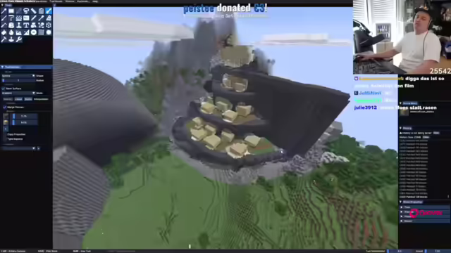 00:54:04Der Streamer probiert World Edit aus, um zu testen, wie Minas Tirith in Minecraft aussehen könnte. Er lädt sich einen Seed herunter und öffnet zwei Minecraft-Fenster gleichzeitig. Er experimentiert mit verschiedenen Tools, wie Zylinder und Shape Tool, um Kreise zu platzieren. Es werden verschiedene Radien ausprobiert und der Flächeninhalt und Umfang der Kreise berechnet, um den Materialbedarf abzuschätzen. Der Streamer fragt den Chat nach Meinungen und Ratschlägen bezüglich der Größe und des Designs. Er berechnet den Materialbedarf für verschiedene Durchmesser und überlegt, wie lange es dauern würde, die benötigten Blöcke zu farmen. Er kommt zu dem Schluss, dass es in Teams passieren müsste. Er reduziert den Durchmesser der Kreise schrittweise und berechnet den Materialbedarf neu.