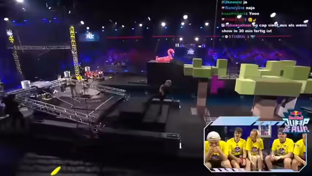 04:23:00Die Stage war ein Garant für Fails. Hugo ist auf jeden Fall ein Kandidat. Es werden vier Fails zur Abstimmung gezeigt. Der Chat wählt Hugo zum Gewinner. Hugo lacht schon im Fallen und taucht dann mit dem Kopf zuerst ab. Es wird überlegt, was einen guten Fail ausmacht. Imke fragt, wie Team Amar den Wegfall von Metashi kompensiert hat. Sie fragt Hugo, ob er traurig ist, und bittet das Publikum um Liebe für ihn. Alles in allem war es ein sehr unterhaltsamer und spannender Wettkampf mit vielen Überraschungen und herausragenden Leistungen.