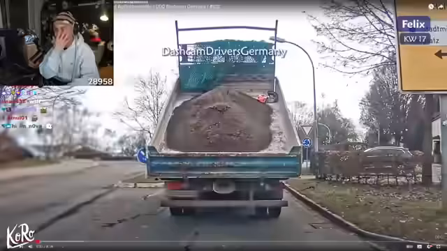 04:23:01Papaplatte äußert sich begeistert über den F40, den er sich gerne kaufen würde, der aber zu teuer ist. Er fragt sich, wer 1,4 Millionen für ein Auto ausgibt. Anschließend werden Dashcam-Videos gezeigt, beginnend mit einem LKW, der Erde auf einem Kreisverkehr verliert. Er amüsiert sich über die Situation und spekuliert, dass dies nicht geplant war. Er wundert sich über die Fahrmanöver und die Unaufmerksamkeit anderer Verkehrsteilnehmer. Es folgen Aufnahmen von Rotlichtverstößen und einem Unfall, bei dem der Verursacher zunächst weiterfährt, aber später gestellt wird. Papaplatte betont die Wichtigkeit von Zeugen bei Unfällen und wirbt für Dashcams mit einem Rabattcode für seinen Shop. Abschließend wird ein riskantes Überholmanöver auf der Autobahn und ein Radfahrer mit Bierdose thematisiert.