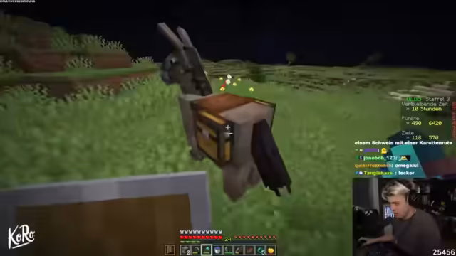 02:59:16Die Spieler werfen die erste Enderperle in Richtung End und planen, etwa 1000 Blöcke zu laufen, bevor sie die nächste werfen. Sie sind überrascht, dass sie bereits 111 Achievements erreicht haben, obwohl sie bisher eher 'gechillt' haben. Ihr Hauptziel ist es, Minecraft für die Elytra durchzuspielen. Sie überlegen, mehr Holz zu farmen, um sich im End Brücken bauen zu können. Weitere Achievements, die sie im Auge behalten, sind das Sammeln von White Pale, Cherry und Dark Oak Holz. Sie erhalten Support durch Subs und freuen sich über den Spaß, den die Custom Achievements bereiten, auch wenn sie nicht perfekt vorbereitet sind. Sie diskutieren über das Zähmen von Pferden und das Füttern von Hühnern, wobei sie feststellen, dass das Sattelcrafting ein Achievement ist und sie dafür Leder und Eisen benötigen. Ein Spieler craftet einen Sattel, während der andere ein Pferd zähmt, um das Achievement '500 Meter mit Pferd reiten' zu erfüllen.
