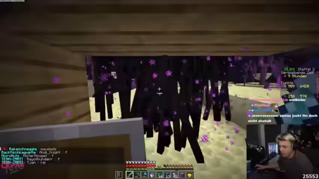 02:38:30Die Spieler setzen ihre Enderman-Farm fort, um genügend Enderperlen für das Endportal zu sammeln. Sie trennen sich kurz, um die Effizienz zu steigern, sind sich aber der Risiken bewusst. Ein unerwarteter Jinx führt dazu, dass ein Spieler fast stirbt, als ein Amboss auf ihn fällt, was jedoch ein Achievement auslöst. Die Spieler kämpfen weiterhin mit der geringen Drop-Rate der Enderperlen und der Notwendigkeit, sich gegen die aggressiven Endermen zu verteidigen. Sie diskutieren die Strategie, wie viele Enderperlen sie benötigen, um sicher ins End zu gelangen, und überlegen, ob sie alle Blöcke im Nether abbauen sollen, um weitere Achievements zu finden. Die allgemeine Stimmung ist angespannt, da die Zeit drängt und die Ressourcen knapp werden.