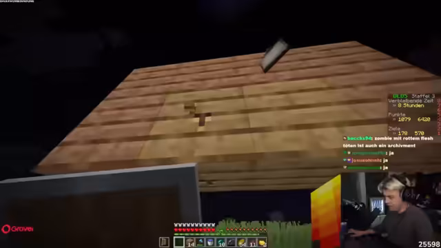 00:17:06Die Spieler starten auf einer frischen Map, auf der jede Kiste Spieler-basiert ist, was bedeutet, dass sie nicht vorab geplündert wurde. Nach einigen technischen Vorbereitungen und der Diskussion über die richtige Minecraft-Version und erlaubte Mods, wird das Team für das DLDS-Event (Die Liga der Sterblichen) erstellt. Der Name des Teams wird nach kurzer Überlegung auf 'Team Ralle' festgelegt, zu Ehren des Vaters des Streamers. Das Event ist ein 12-Stunden-Achievement-Rennen, bei dem Teams jederzeit auf den Server gehen können. Jeder Spieler hat nur ein Leben; stirbt ein Teammitglied, ist es ausgeschieden, der Teampartner kann jedoch weiterspielen. Das Spiel beginnt mit einer feierlichen Hymne und der Anzeige der Spielbedingungen: 12 Stunden Zeit, 6420 Punkte zu erreichen und nur ein Leben pro Spieler. Die ersten Achievements werden schnell gesammelt, darunter das Herstellen eines Schwertes und das Überleben länger als Bram in Varo 2, was den Spielern erste Belohnungen in Form von Eisen einbringt.
