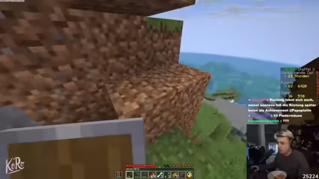 00:34:51Nach dem Start des Spiels bemerken die Spieler, dass die Minecraft-Welt bei einem der Streamer einen Grauschimmer aufweist, was möglicherweise am Custom-Texture-Pack liegt. Die ersten Achievements werden schnell gesammelt, darunter das Herstellen eines Schwertes und das Überleben länger als Bram in Varo 2, was den Spielern erste Belohnungen in Form von Eisen einbringt. Die Strategie wird diskutiert: Es geht darum, so viele Achievements wie möglich in zwölf Stunden zu sammeln, wobei die Reihenfolge der Achievements keine Rolle spielt. Das Hauptziel ist es, schnell Elytra zu erhalten, um mobiler zu sein und die anderen Aufgaben effizienter zu erledigen. Das Team entdeckt ein Dorf, was ebenfalls ein Achievement auslöst, und sammelt weitere Gegenstände wie Heuballen und Bundles. Die Spieler müssen vorsichtig sein, da Mobs im Hardcore-Modus extrem gefährlich sind und der Tod das Ende des Spiels bedeutet. Es wird beschlossen, zunächst Nahrung zu sammeln und dann eine Mine zu suchen, um Diamanten zu farmen.