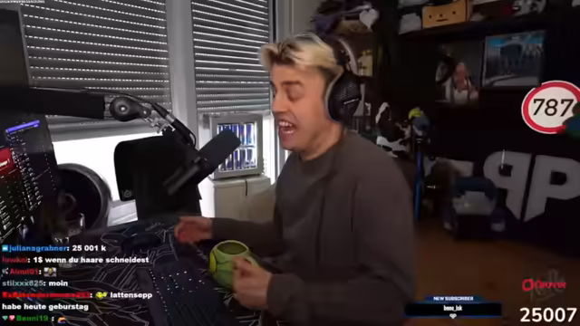 03:50:54Während Rax eine kurze Pause einlegt, kündigt der Streamer ein Giveaway in Zusammenarbeit mit Grover an, bei dem eine Nintendo Switch 2 für ein Jahr gewonnen werden kann. Er erklärt, dass Grover eine Website ist, auf der man verschiedene Technikprodukte mieten kann, und bewirbt einen Rabattcode für den ersten kostenlosen Monat. Der Streamer teilt auch persönliche positive Erfahrungen mit Grover, insbesondere wie er iPhones gemietet und von der Versicherung bei Beschädigung profitiert hat. Er erwähnt, dass er die Partnerschaft mit Grover schätzt und sogar seine Business-E-Mail-Adresse nennt. Die Zuschauer werden aufgefordert, 'Grover' in den Chat zu schreiben, um am Gewinnspiel teilzunehmen, was zu einer Flut von Nachrichten führt, auch nachdem das Gewinnspiel bereits beendet ist.
