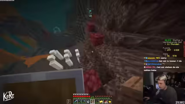 02:12:05Die Spieler setzen ihre Reise im Nether fort, um eine Festung zu finden, die für weitere Achievements und das Sammeln von Blaze-Rods und Enderperlen unerlässlich ist. Sie stoßen auf Goldvorkommen und nutzen die Gelegenheit, ein Achievement zu erfüllen, indem sie Gold abbauen, während sie neben einem Piglin stehen. Die Suche nach der Festung wird durch die schlechte Sicht und die gefährliche Umgebung erschwert. Währenddessen diskutieren sie über die Effizienz der Enderperlen-Farm und die Notwendigkeit, genügend Perlen für das Endportal zu sammeln. Sie müssen auch ein Achievement erfüllen, indem sie ein Bett explodieren lassen, ohne Schaden zu nehmen. Die Spieler kämpfen mit der geringen Drop-Rate von Enderperlen und den ständigen Angriffen von Endermen.