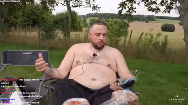 07:18:21Es werden die Erlebnisse vom Campingplatz geschildert, der als idyllisch, aber ohne Strom beschrieben wird. Der Streamer erzählt eine lange und detaillierte Anekdote über ein besonders stressiges Kackerlebnis auf dem Campingplatz, das mit Problemen mit der Klotür und einer seltsamen Sicherung durch eine Schraube zusammenhängt. Diese Geschichte wird mit einer früheren Erzählung über seinen Sportlehrer verglichen, der angeblich die bislang längste Wurst im Klo hinterlassen hatte.
