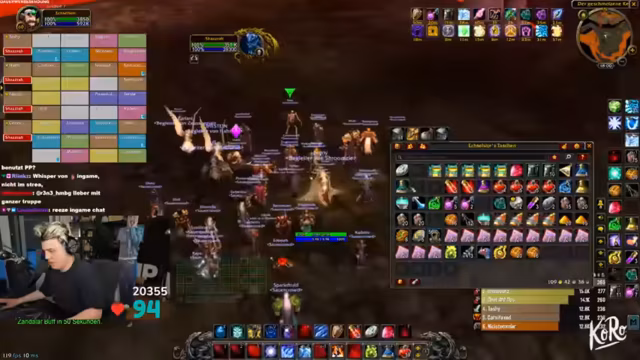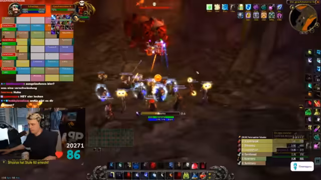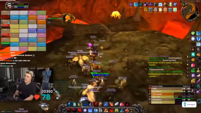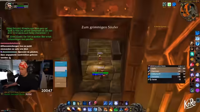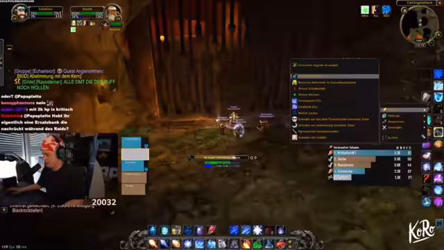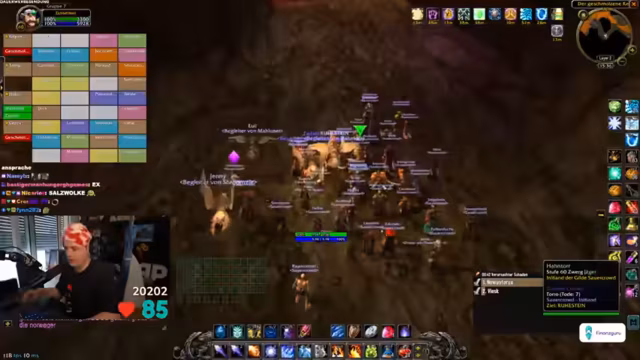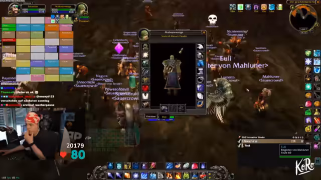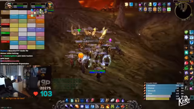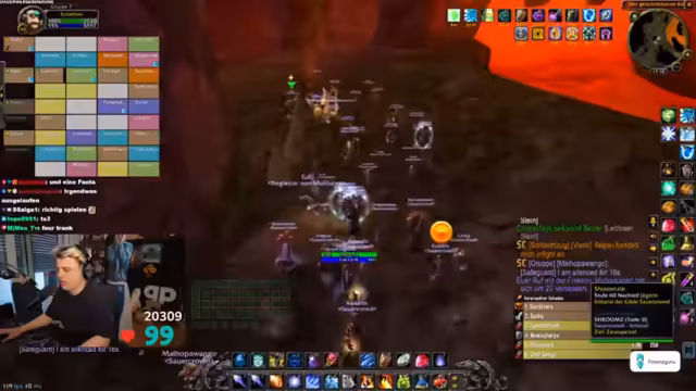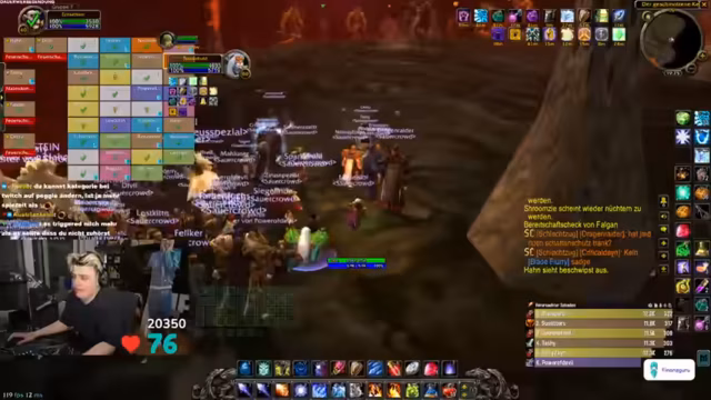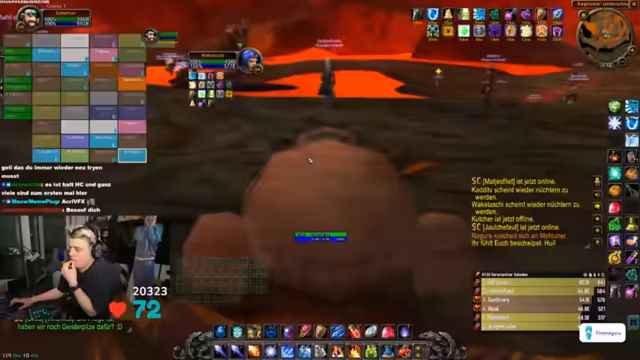 03:09:09Zu Beginn des Streams ereignen sich zahlreiche technische Probleme. Ein Spieler wird versehentlich nach Ironforge und dann nach Stormwind portet, was zu großem Unmut im Chat führt. Gleichzeitig friert der Streamer-PC komplett ein, was den gesamten Raid zum Stillstand zwingt. Nach dem Neustart müssen sich alle Spieler erneut einloggen, und es kommt zu weiteren Disconnects und Abstürzen, was die anfängliche Organisation stark erschwert. Auch World of Warcraft selbst stürzt mehrmals ab, was die anfängliche Freude über den Final-Run trübt und schnelles Reagieren erfordert.