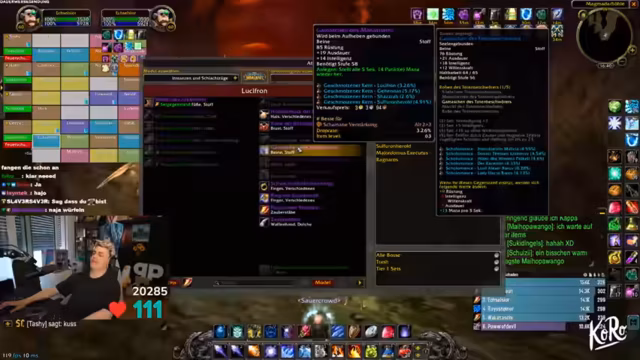 05:22:09Nach dem Sieg über den letzten Boss beginnt die Gruppe mit der Vorbereitung auf den Endboss, Ragnaros. Es werden Buffs, insbesondere Arcane Protection, verteilt und die Taktik für den Kampf erklärt. Der Streamer warnt vor der Teleportationsmechanik des Bosses und dem anschließenden Aggro-Reset. Der Start des Kampfes verläuft jedoch zunächst holprig: der Boss wird anfangs nicht korrekt angegriffen, was den Streamer zu einem emotionalen Ausbruch und einer deutlichen Rüge der Gruppe veranlasst.