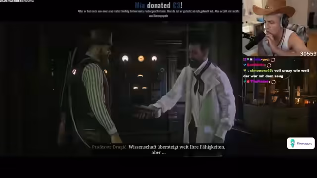 03:06:48Eine Cutscene beginnt, die einen wichtigen Wendung in der Story von Arthurs Krankheit und dem geplanten Ausbruch der Bande zeigt. Der Streamer bemerkt zu spät, dass es sich um eine spoilerreiche Szene handelt und entschuldigt sich bei seinen Zuschauern, die das Spiel noch nicht gespielt haben. Er verspricht, zukünftig Cutscenes auszublenden oder muten, um Spoiler zu vermeiden.