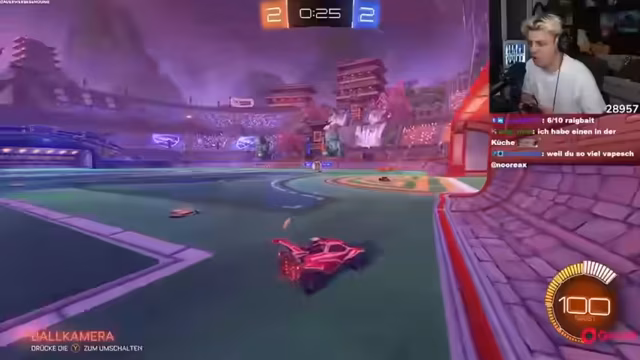05:11:16Ein spontanes Rocket-League-Spiel wird gestreamt, bei dem die beiden Streamer gegen unranked Gegner antreten. Der Spielverlauf ist geprägt von packenden Szenen, glücklichen Rebounds und einem turbulenten Comeback. Dabei gibt es zahlreiche technische Diskussionen zu Spielmechaniken wie Air-Dribbles und Air-Flips, während das Spiel auf einer lockeren, unterhaltsamen Ebene verläuft.