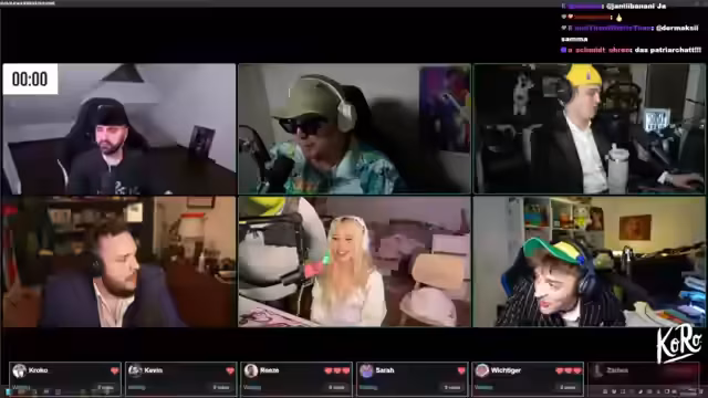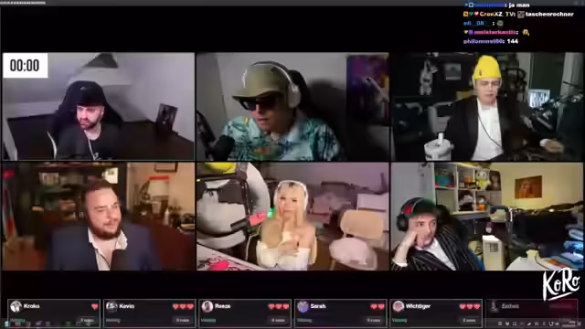 02:04:11Die Teilnehmer, darunter Kroko, Reese, Sarbex, Sarah und Wichtiger, spielen das Spiel 'Der Dümmste fliegt'. Der Streamer stellt verschiedene Fragen aus verschiedenen Wissensgebieten wie Politik, Geografie, Popkultur und Wissenschaft. Die Teilnehmer müssen antworten und am Ende jeder Runde abstimmen, wer der Dümmste war.