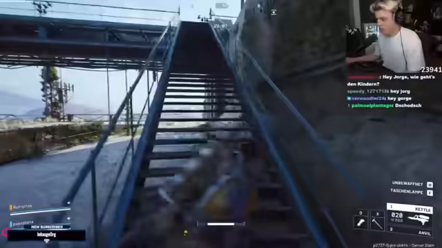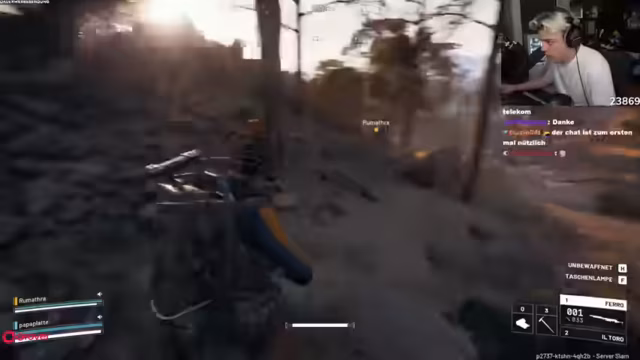 02:08:36Die Spieler diskutieren über Nahkampf und ob man sich gegenseitig Gegenstände droppen kann. Sie looten in einem Gebäude, während ein Spieler eine Sniper hat, was als nicht ideal für den Innenbereich angesehen wird. Sie sind wieder überladen und beschließen, jemanden zu suchen, um ihn zu bekämpfen. Ein Spieler entdeckt einen Gegner und versucht, ihn mit der Sniper abzuschießen. Der Gegner wird gejagt, und die Spieler bemerken, dass die Sonne sie blendet. Sie versuchen, einen Weg zu finden, um den Gegner zu erreichen, und stellen fest, dass sie sich verlaufen haben. Es wird über die Hörbarkeit von Schritten im Spiel gesprochen.