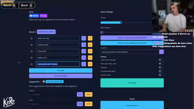 04:45:26Die Streamer beginnen eine Runde Geo Bingo, bei der sie auf Google Maps nach fünf zufälligen Objekten suchen müssen. Wer zuerst alle Objekte gefunden hat oder nach 20 Minuten mehr Objekte gesammelt hat, gewinnt. Es wird eine Lobby erstellt und die maximale Spieleranzahl auf zwei begrenzt. Die Spieler einigen sich auf zehn Suchobjekte. Deutschland, Österreich und die Schweiz sind als Suchgebiete verboten, um die Schwierigkeit zu erhöhen. Die Chat-Vorschläge werden gesammelt und diskutiert. Zu den ausgewählten Objekten gehören: Ampel auf Gelb, offenes Feuer, gelbe Hose, pinkes Auto, Trampolin, Ziege, Obststand, Dackel, jemand fällt hin und ein Surfer. Es wird betont, dass die Objekte echt sein müssen und keine Bilder zählen. Die Streamer beschließen, ohne Chat-Hilfe zu spielen.