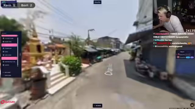 04:54:36Die Geo Bingo-Runde beginnt. Papaplatte startet in Los Angeles, um schnell eine Ampel auf Gelb zu finden, was ihm auch gelingt. Anschließend sucht er nach einer gelben Hose in London am Buckingham Palace, wo er jedoch keine findet. Er wechselt nach Tokio, in der Hoffnung, dort fündig zu werden, aber auch hier bleibt die Suche erfolglos. Die Suche nach einem Obststand in Thailand gestaltet sich ebenfalls schwieriger als erwartet, da er in einem Tempelgebiet oder Industriegebiet landet. Die Ladezeiten der Bilder werden als problematisch empfunden. Nach fünf Minuten sind die Fortschritte gering. Papaplatte wechselt nach Istanbul, um nach einem Obststand oder einer gelben Hose zu suchen. Dort findet er überraschend schnell ein pinkes Auto, was ihn auf vier gefundene Objekte bringt. Er gerät unter Druck und wechselt nach Paris zum Eiffelturm, um nach einer gelben Hose oder einem Trampolin zu suchen. Er entdeckt eine gelbe Hose, versucht näher heranzuzoomen, was jedoch dazu führt, dass das Bild verschwindet und das Objekt nicht gewertet werden kann. Die Suche nach einer fallenden Person bleibt ebenfalls erfolglos.
