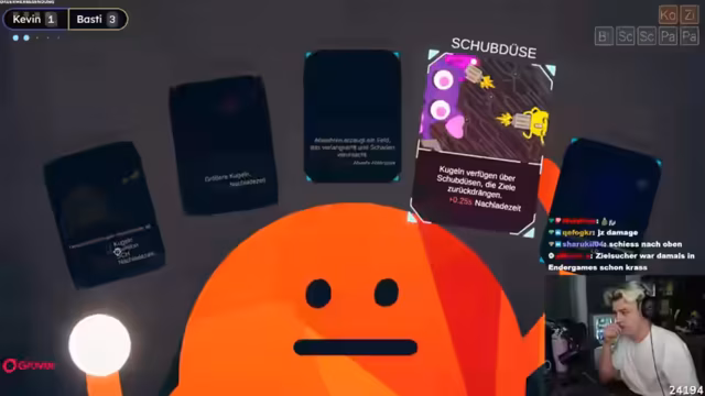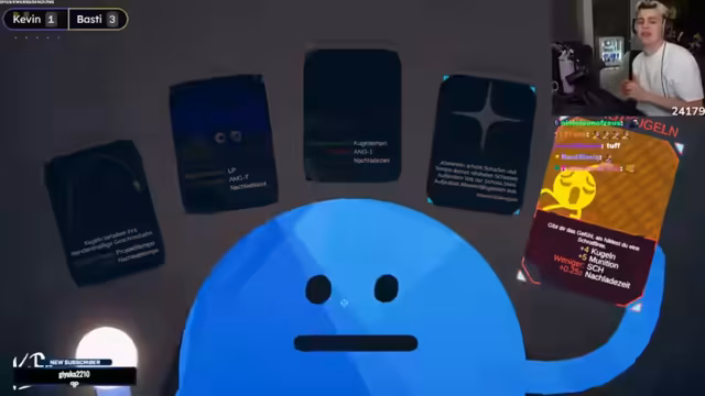05:38:05Nachdem der Streamer die erste Runde verloren hat, darf er zum ersten Mal ein Upgrade wählen und entscheidet sich für 'Zielsuche' für seine Kugeln, was sich jedoch als Fehlentscheidung erweist. Diese Fähigkeit macht seine Schüsse unpräzise und ineffektiv, besonders gegen den Gegner, der weiterhin auf aggressive Builds setzt. Die Schwierigkeiten des Streamers in 'Rounds' werden deutlich, da er sich oft selbst schadet oder seine Fähigkeiten nicht optimal einsetzt. Die Karten im Spiel haben einen erheblichen Einfluss auf die Taktik, und einige Karten sind für bestimmte Builds vorteilhafter als andere. Der Streamer versucht, seine Strategie anzupassen, indem er verschiedene Upgrades ausprobiert, aber die Kombination aus seiner Spielweise und den gewählten Fähigkeiten führt zu weiteren Niederlagen. Die Frustration wächst, da er das Gefühl hat, sich 'verbaut' zu haben und nicht effektiv spielen zu können.