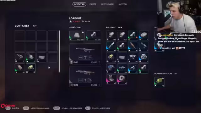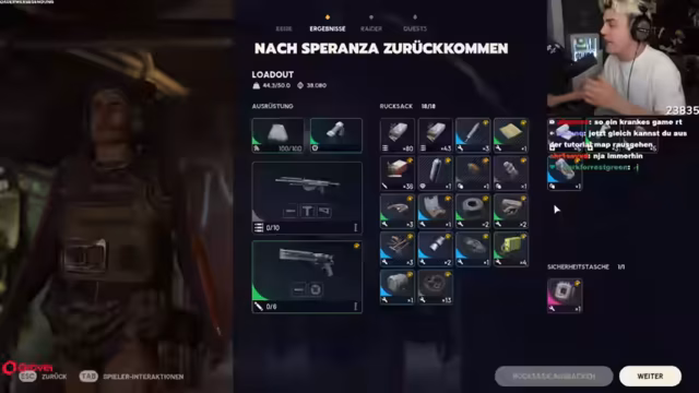 02:21:35Nach der verlorenen Runde bereiten sich die Spieler auf die nächste vor. Sie diskutieren über die Effektivität ihrer Waffen und überlegen, welche Ausrüstung am besten geeignet ist. Der Streamer entscheidet sich für eine neue Waffe, die Kettel 2, und überlegt, ob er zwei Waffen mitnehmen soll. Sie stellen fest, dass sie nur begrenzte Heilmittel und Munition haben und müssen diese nachkaufen. Dabei wird ihnen bewusst, wie teuer die Gegenstände sind und wie schnell ihr Geld schwindet. Die Spieler versuchen, ihre Inventare zu optimieren und besprechen, welche Gegenstände sie verkaufen können, um sich besser auszurüsten. Es wird auch über die Möglichkeit gesprochen, Granaten mitzunehmen, da diese in den vorherigen Kämpfen effektiv waren.